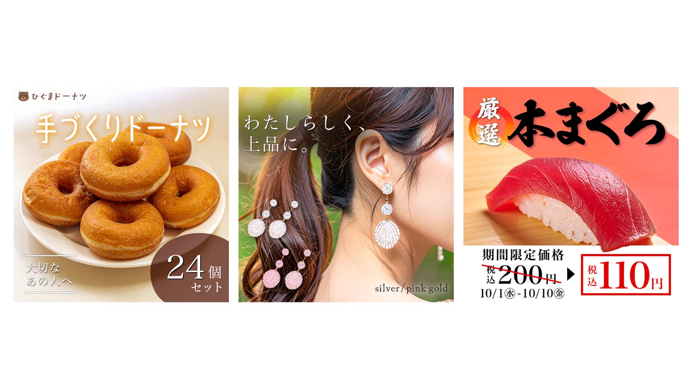 – 作品:サムネイル(ドーナツ/イヤリング/お寿司)